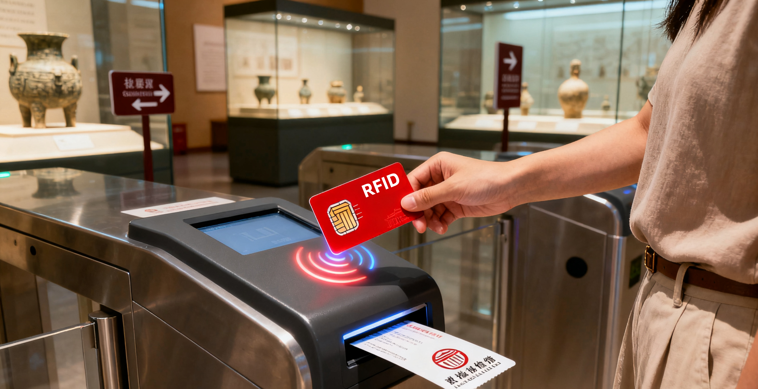 传统纸质门票存在伪造风险与验证效率低的问题。RFID 智能门票和文创票证通过唯一芯片 ID 提供强大的防伪功能,同时支持快速通行和多元化应用,如会员绑定与场馆内精准定位。
